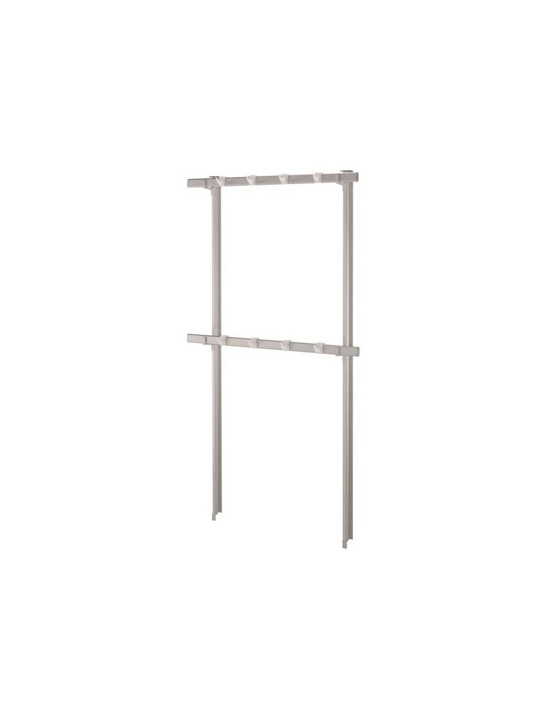 Gancho - Modelo KIT01F - Fabricado en aleación de aluminio anodizado - Ideal para su instalación en el interior de cámaras frigoríficas prefabricadas - Perfil colgador ovalado 50 x 20 mm - Longitud del colgador cm 75 - Altura del mástil cm 105 - N.1 perfil colgador nivelado - Capacidad máxima del colgador kg 100 bien distribuidos