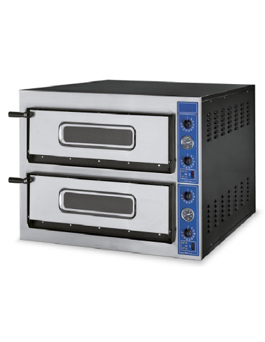 Horno de pizza eléctrico - Modelo F2-90EAPS - N° 6+6 pizzas - Diámetro de la pizza 30 cm - Temperatura 50-500°C - Dimensiones cm 90 x 102 x 75 h