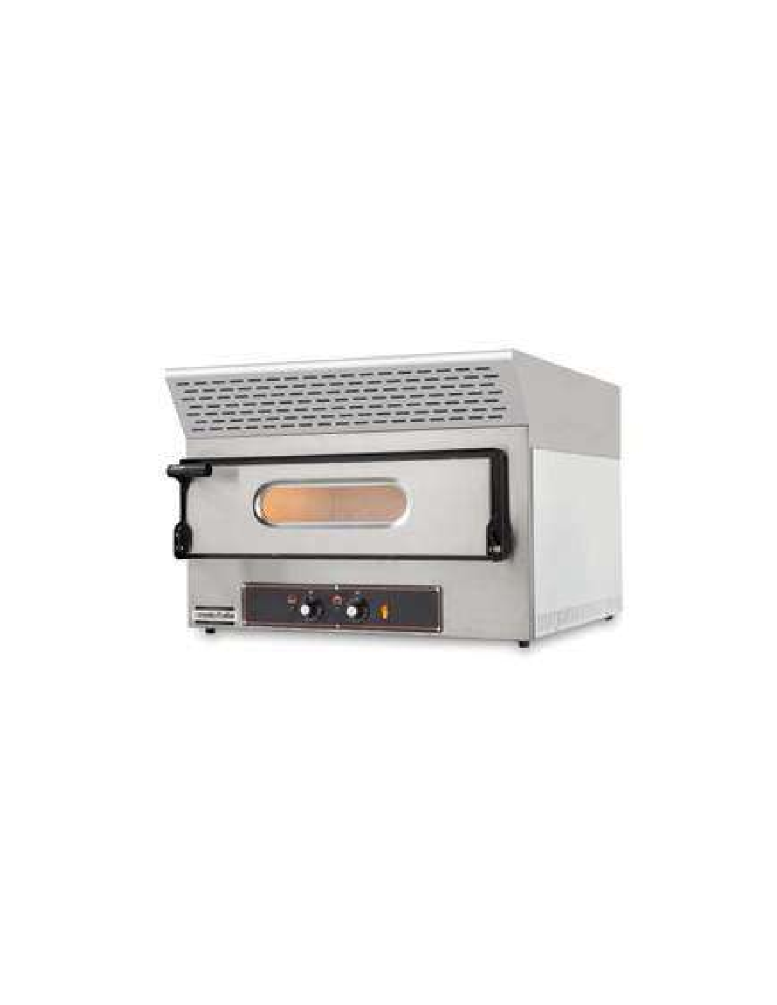 Horno eléctrico para pizzas con campana - Modelo EVO - Capacidad pizzas 2 (Ø cm 30) - N. 1 cámara cm 61 x 52 x 11 h - Temperatura 50/500° - Plataforma de cocción de piedra refractaria - Energía Kw 3.2 - Monofásico - Cm 74 x 60/71.5 x 55 h