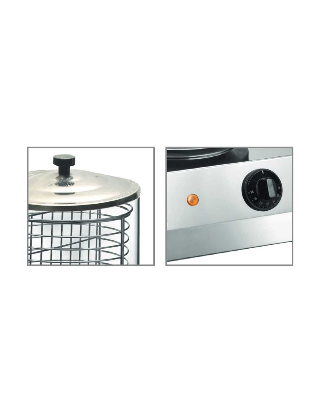 Máquina para calentar y cocinar salchichas - Modelo HDB - Bastidor de acero inoxidable - Termostato de trabajo 0-90° - Energía W 800 - Alimentación monofásica V230/1/50-60Hz - Dimensiones cm 28 x 27 x 40 h