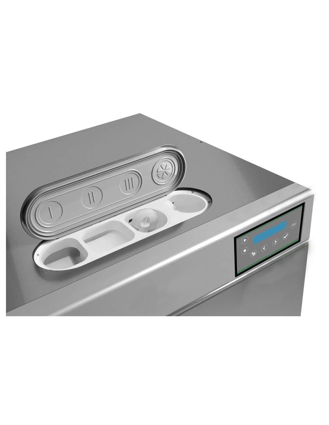 | Sistema de pesaje patentado DWS que pesa y regula automáticamente el consumo real de recursos | |