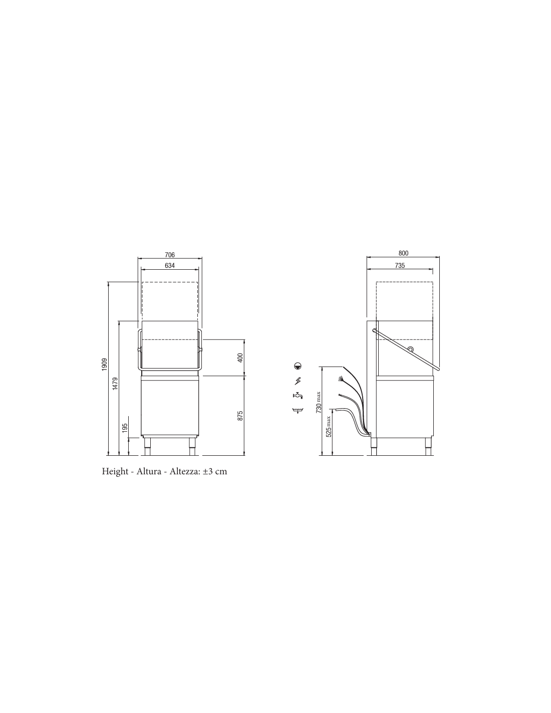 | Equipamiento estándar: 1 cesta de cristal y 1 cesta de platos cuadrados (dim. cm 50 x 50) 1 cesta de cubiertos (cm 11 x 11 x 14 h) |