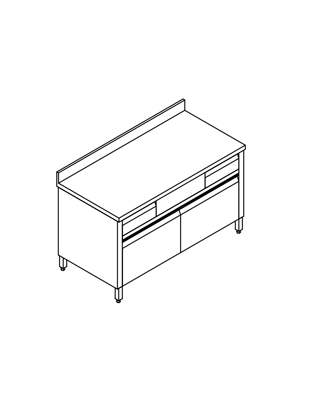 Mesa cerrada AISI 304 - Profundidad 70 - Alzatina - 3 cajones verticales