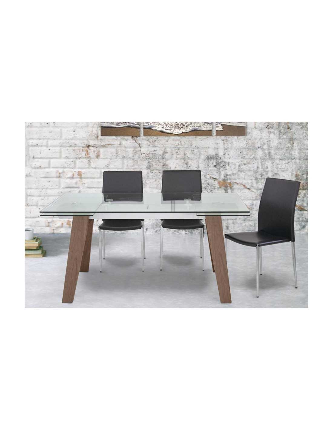 Mesa - Aluminio - patas de madera - Extensible parte superior en cristal - cm 160+40+40 x 90 x 75 h