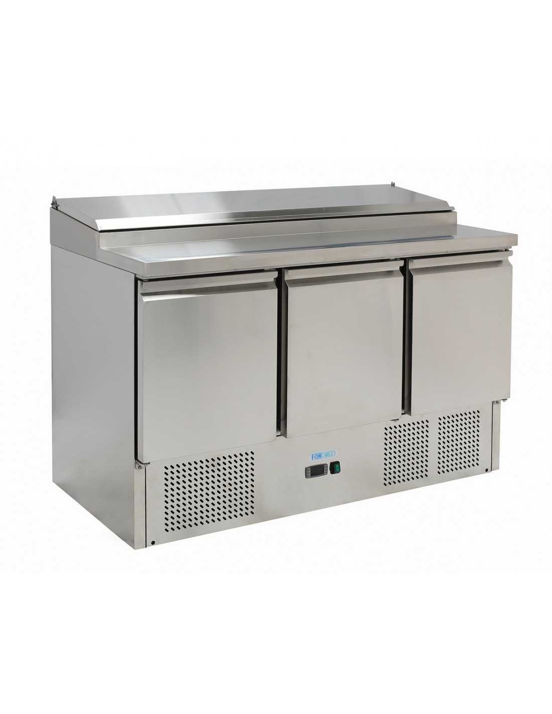 Saladette refrigerada - Modelo G -PS300-FC - Temperatura +2°/ +8°C - N. 3 puertas - Capacidad litros 392 - Bastidor de acero inoxidable AISI 201 - Refrigeración estática - Dimensiones cm 136,5 x 70 x 85 h