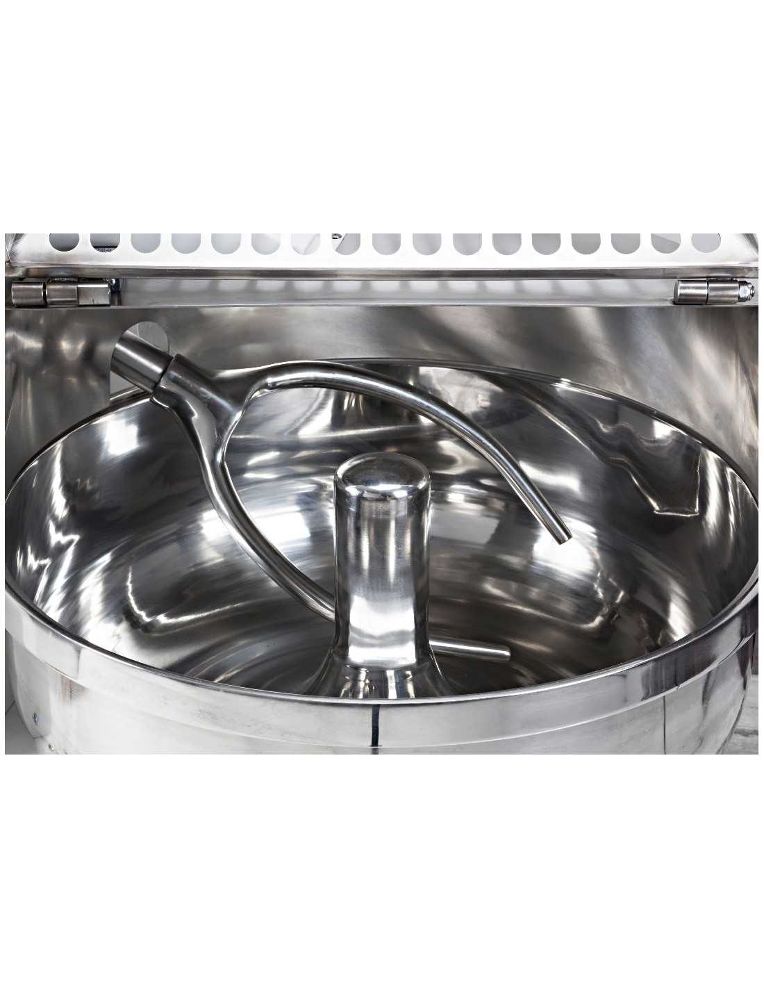 Amasadora de horquilla - Modelo FF30N - Rendimiento horario 90 kg/h - Capacidad cuba kg 30 - Capacidad litros 16 - Dimensiones cuba Ø cm 53 x 22 h - Temporizador mecánico - Alimentación monofásica - Dimensiones cm 100 x 65 x 61 h
