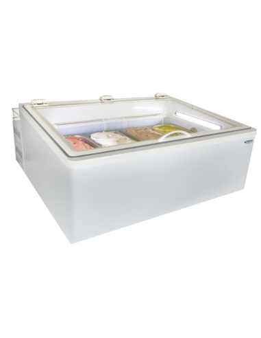 Expositor para mostrador de helados - Temperatura -10 - 22°C - Estático - Capacidad bandejas 4 x 5 litros u 8 x 2,5 litros - o 6 medias cajas de 4 litros - cm 85 x 81 x 37,3 h
