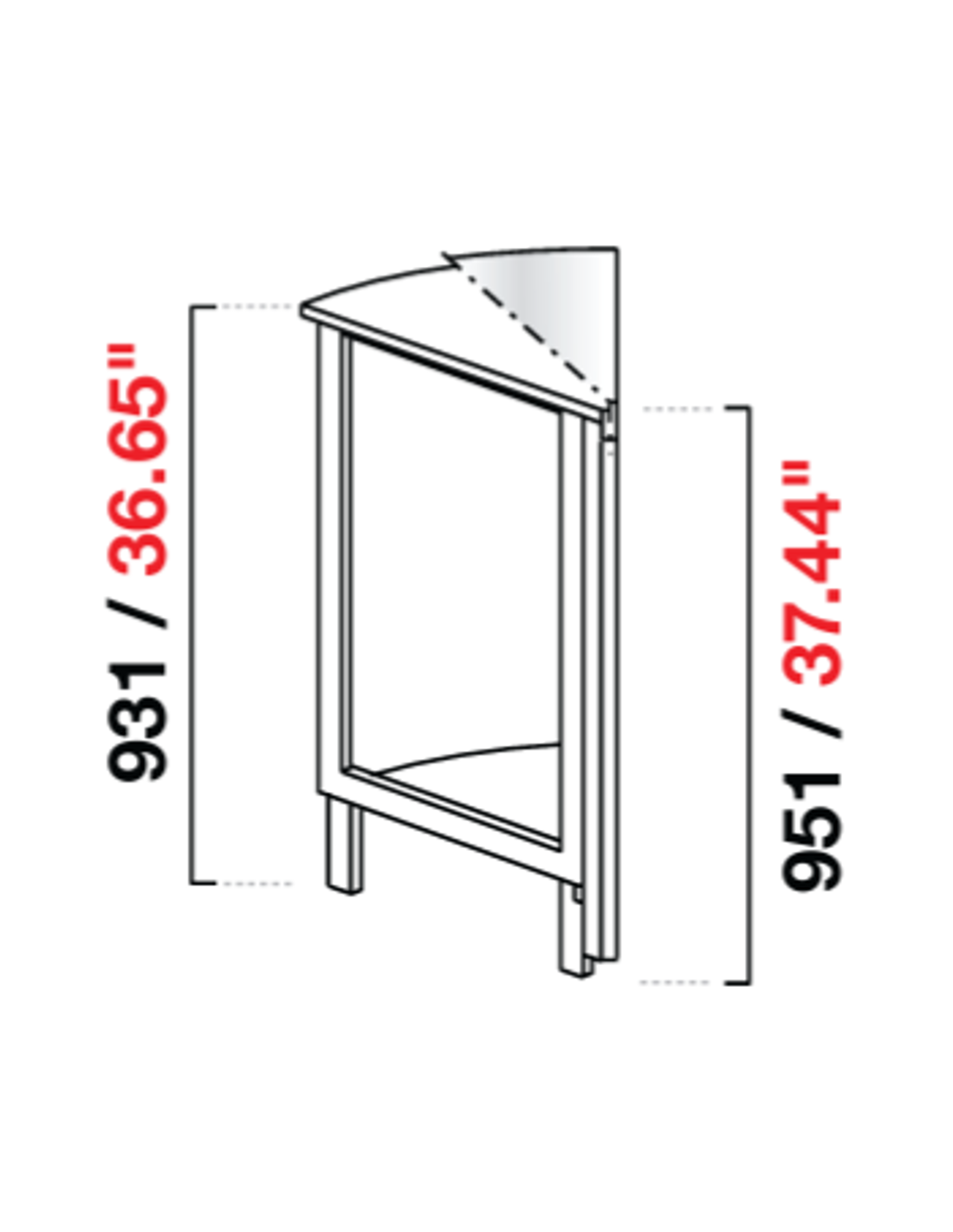 Ángulo curvado 45° - Configuración plana - Dimensiones cm 72.8 x 72.8 x 93.1 h