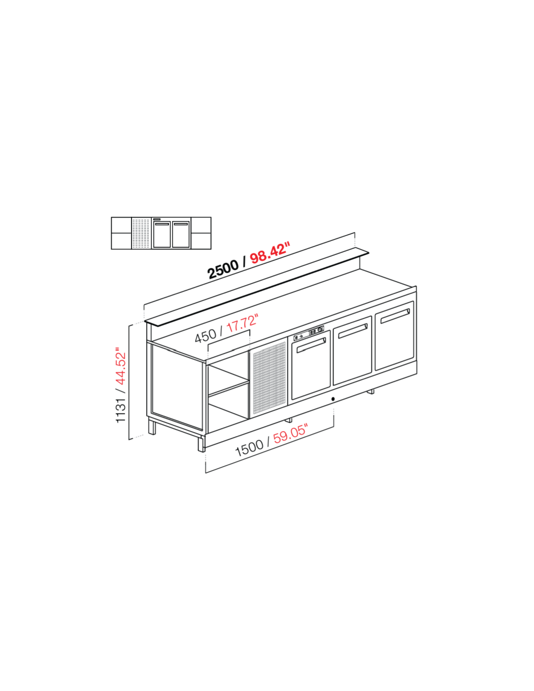 Banco bar - Refrigerado - N. 1 puerta - Planta M/G/A - cm 100 x 68.8 x 95.1 h