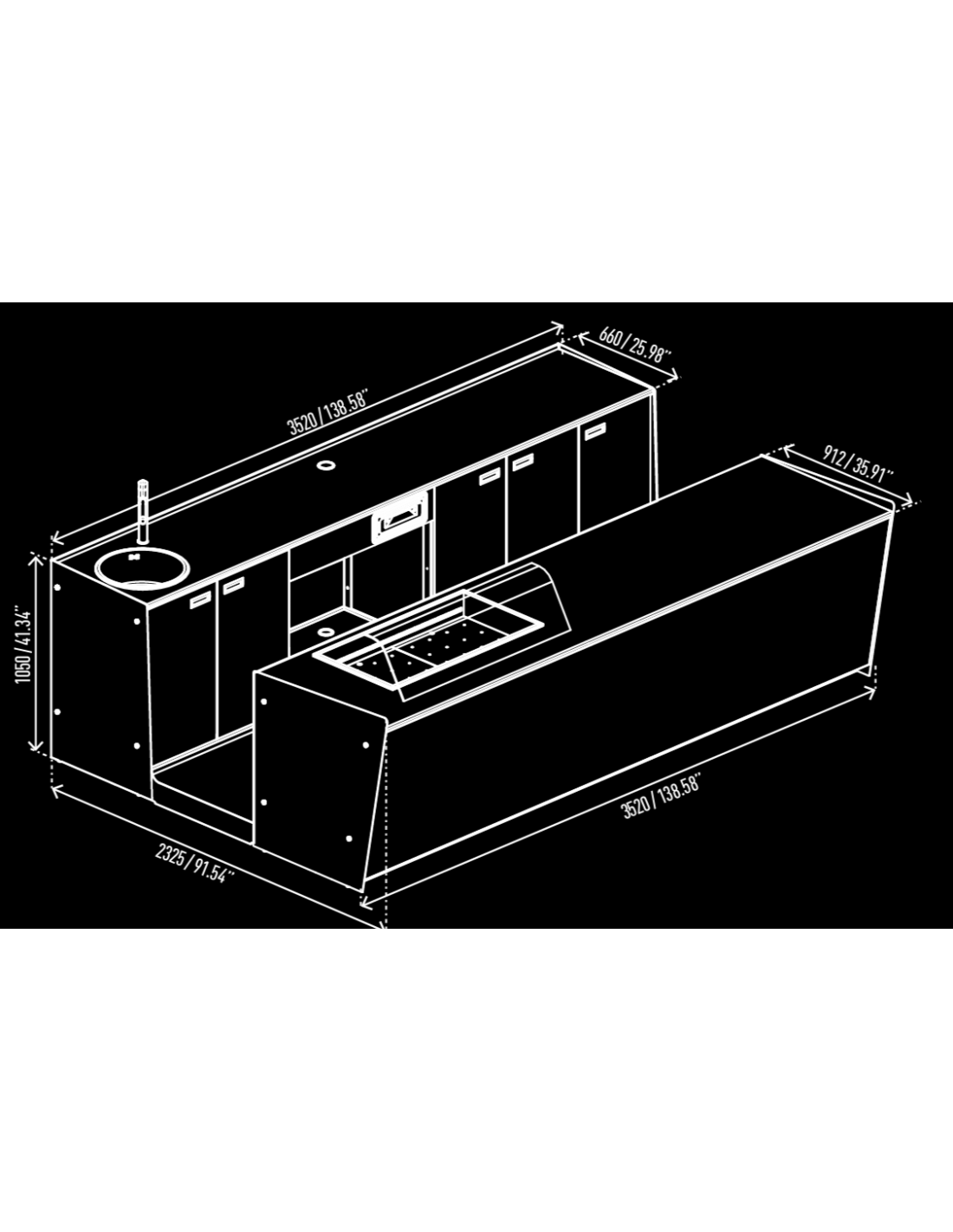Barra y contrabarra - Mostrador - Cm 350 x 232.5 x h 95.1