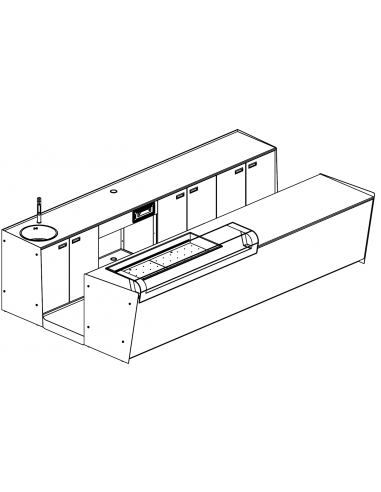 Barra y mostrador trasero - Lavabo refrigerado - Cm L 300 x P 232,5 x h 115