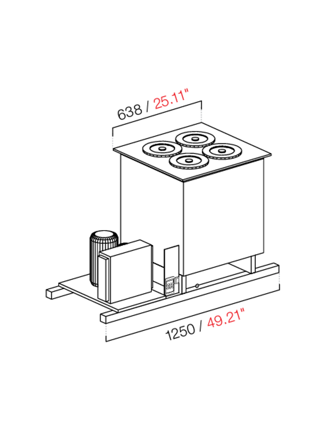 Recesado bien - A glycol..- N. 4 pozos - cm 75 x 68.8 x 95.1 h