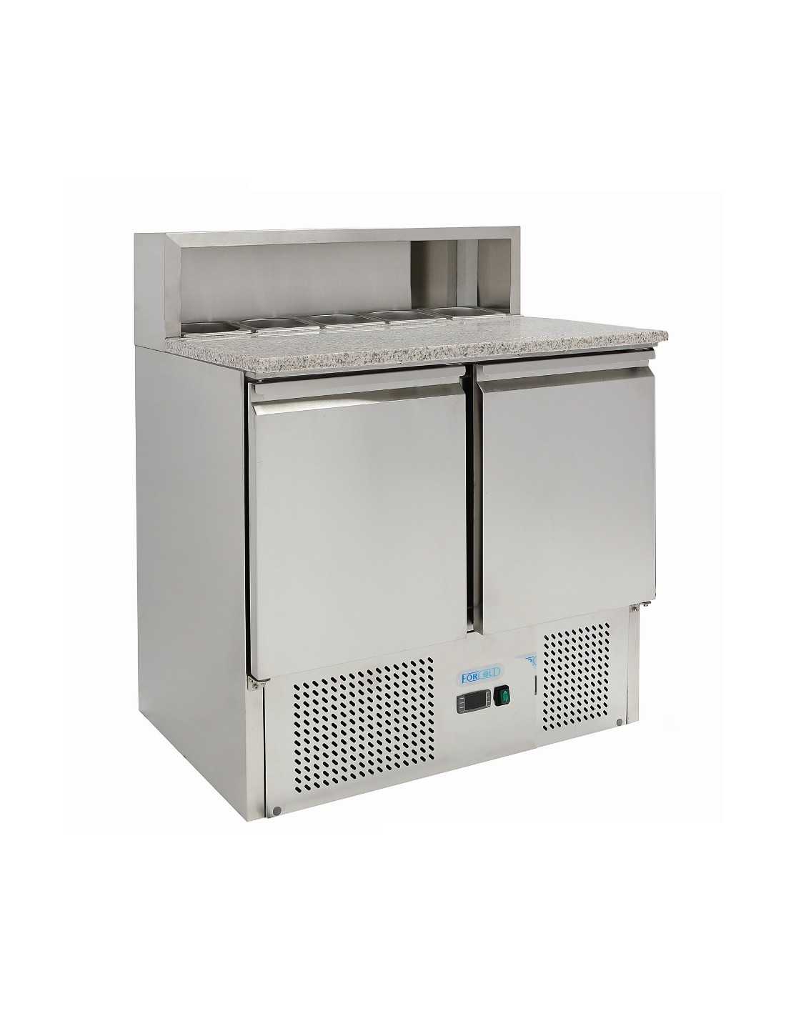 Mostrador para pizzas - Modelo G -PS900-FC - Temperatura +2°/ +8°C - N. 2 puertas - Capacidad litros 240 - Marco de acero inoxidable AISI 201 - Refrigeración estática - Dimensiones cm 90 x 70 x 107,5 h