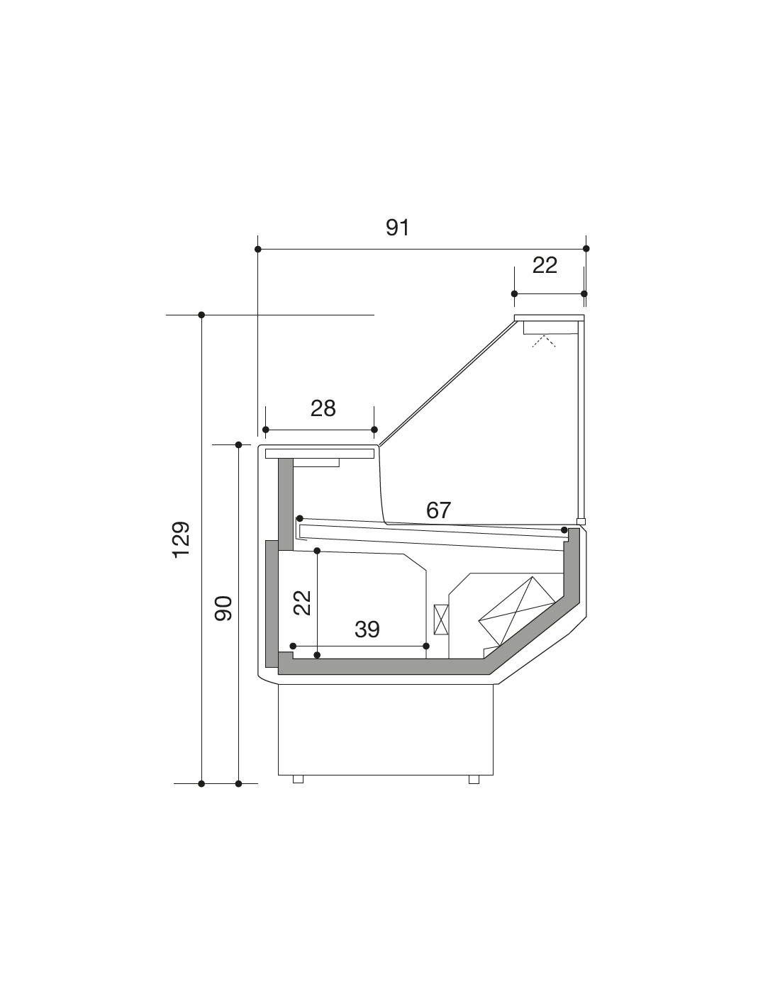 Mostrador de alimentos con vidrio recto - Ventilado con celda - cm 200 x 91 x 129 h