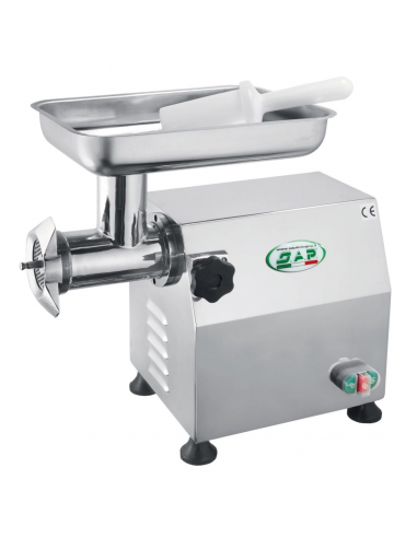 Picadora de carne - Modelo TC 12 - Producción oral 100Kg/h - Mouth Ø cm 5.2 - Energía Kw 0.75 - Hp 1 - Grupo de rectificado de acero inoxidable Carcassa - Fuente de alimentación Trifase V400 - Cm 42 x 26 x 48 h