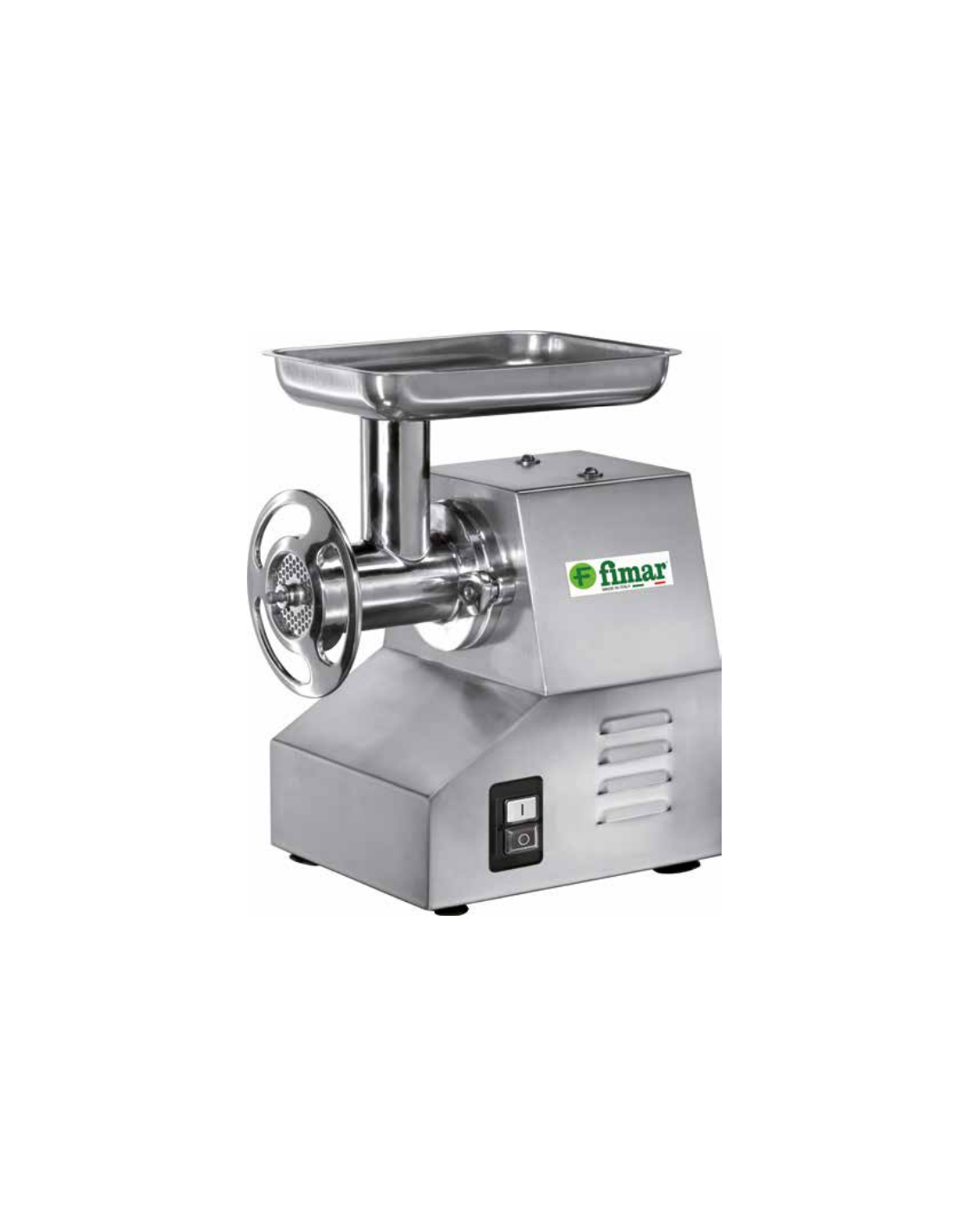 Picadora de carne - Modelo 22TSE - Carcasa y tolva de acero inoxidable - Producción 150- 250 kg/h - Entrada de carne Ø 5,2 mm - Trifasico- Dimensiones cm 42 x 30 x 52 h