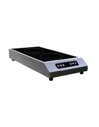 Placa de inducción snack- ModeloPI2-3000F - 2 zonas verticales - Inductor diam.18 - Energía Kw 3.0 - Alimentación monofásica V230 - Dimensiones cm 66.5 X 31 X 10.5 h