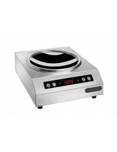Wok de inducción - ModeloTT500W-TW - Marco de acero inoxidable - Temporizador de 1 a 180 minutos - Energía 5000W - Alimentación monofásico 230V - Pantalla digital - Dimensiones cm 40x48.5x18h