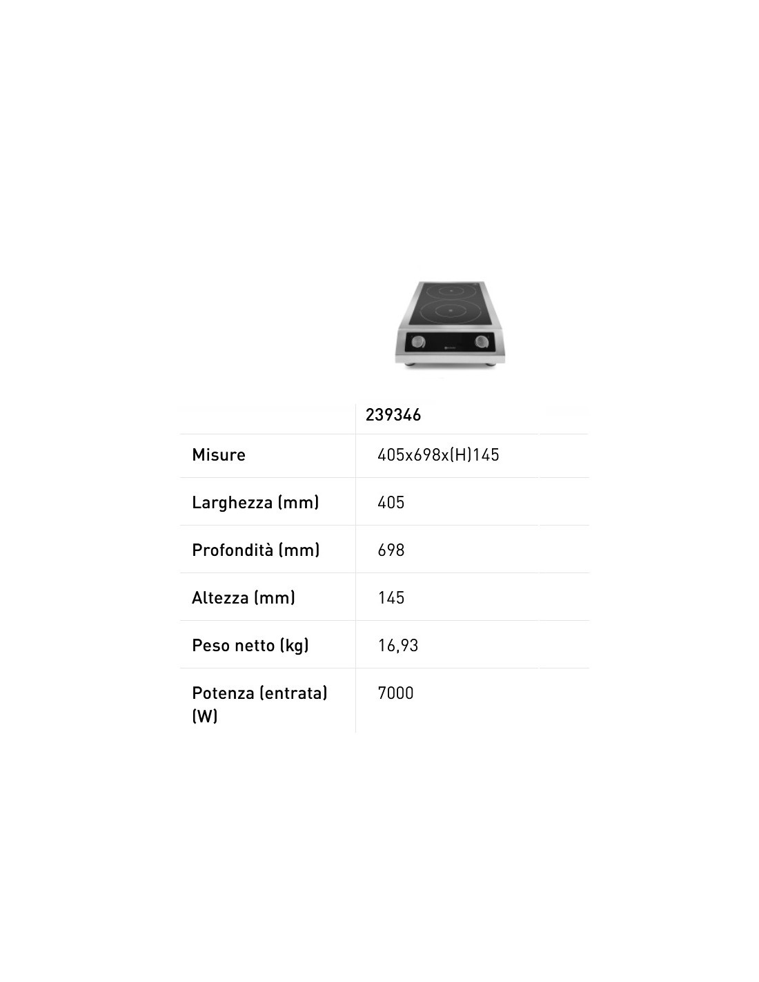 Placa de inducción - Modelo FI70 - Estructura de acero - Energía regulable - Energía W 7000 - Dimensiones cm 40,5 x 69,8 x 14,5h