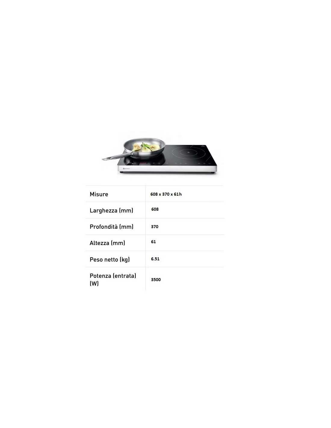 Placa de inducción - Modelo PFD35 - Placa vitrocerámica - Superficie inductiva mm 140÷ 220 - Energía rendimiento 500 ÷ 3500W - Energía Kw 3.5 - Alimentación monofásica V230 - Cm 34.3 x 44 x 12 h