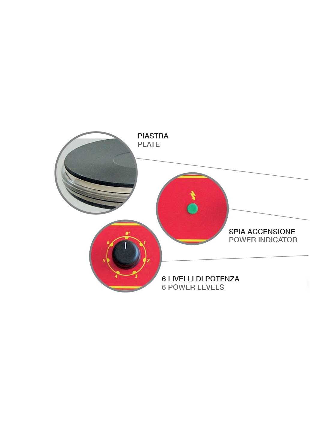 Placa de cocción eléctrica - Modelo PCE22 - Construcción en acero inoxidable - Placa de cocción cm Ø 22 - N.6 niveles de potencia - Limitador de seguridad - Energía W 2 - Alimentación monofásica V230/1/50Hz - - - Dimensiones cm 30 x 40 x 16 h