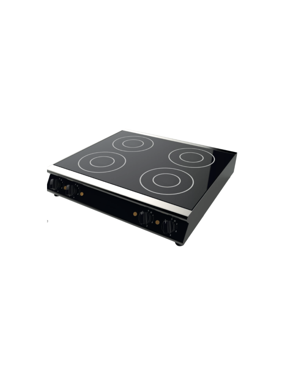 Placa vitrocerámica - 4 zonas de cocción - Energía Total Kw 10 - Energía trifásica V400/3/50Hz - Dimensiones cm 71 x 67 x 12 h