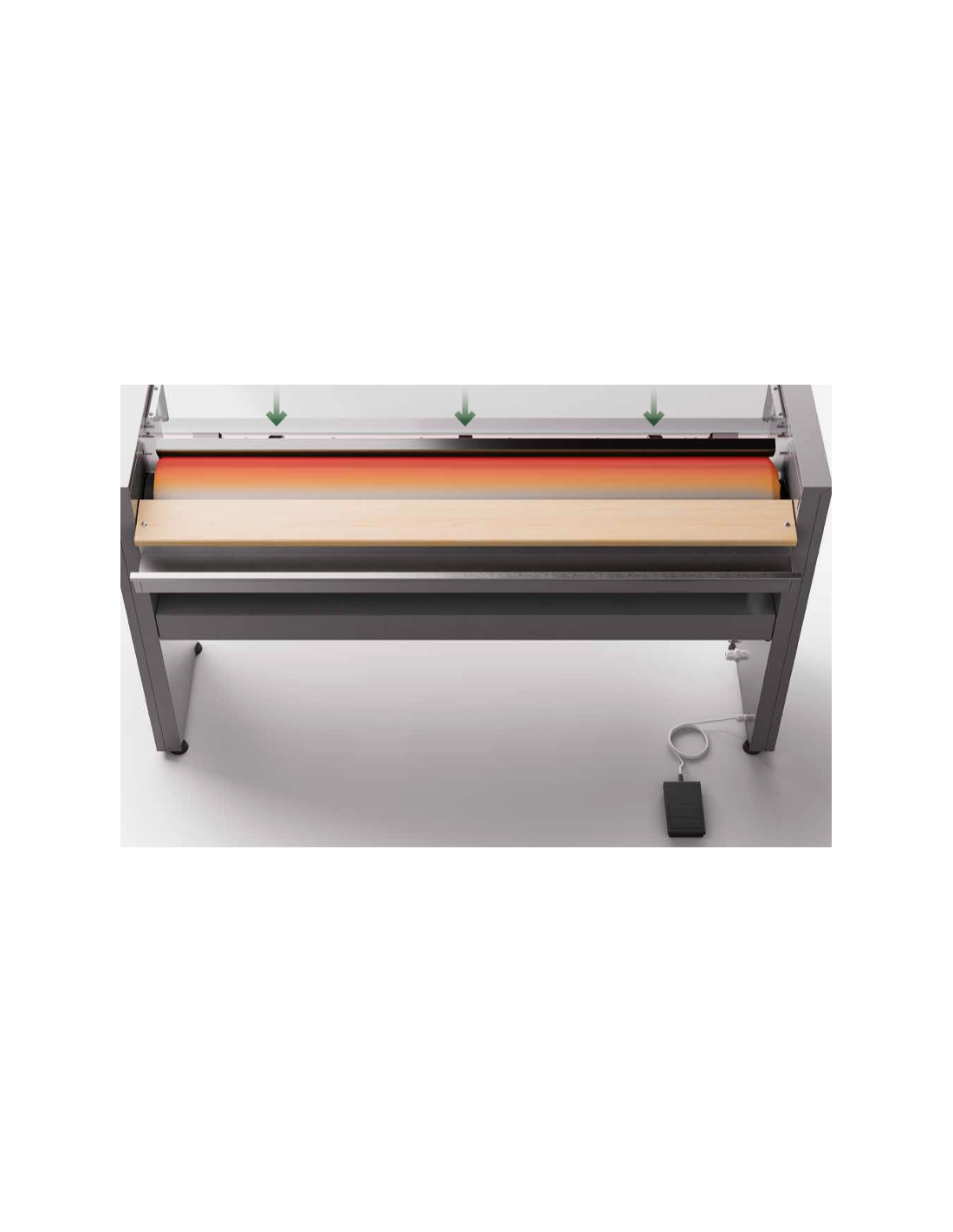 | Gran parte superior del rodillo a disposición del operario para obtener un efecto de banda de introducción especialmente útil en caso de prendas grandes | |