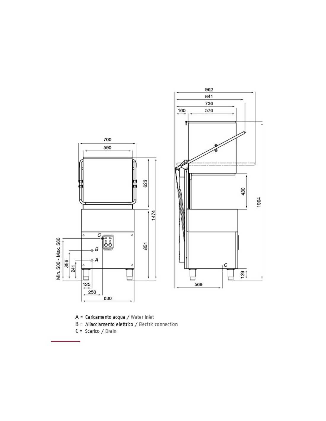 Lavavajillas electrónicas capotta - Bomba - Cesta cm 50x50 - cm 62 x 77 x 143.5/190 h