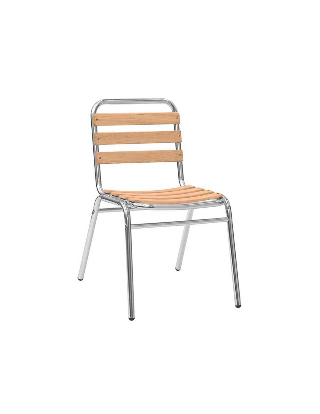 Silla exterior - Marco de aluminio anodizado - Pipe Ø 25 x 1.5 mm - Hojas de madera de...