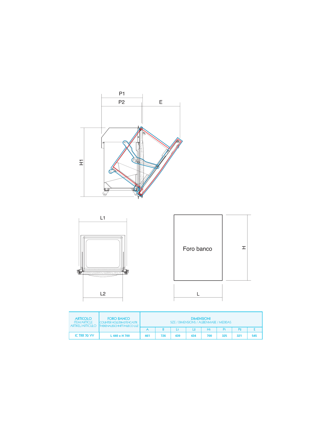 Dimensiones agujero (Elección) | Cm 44 x 70 h |
