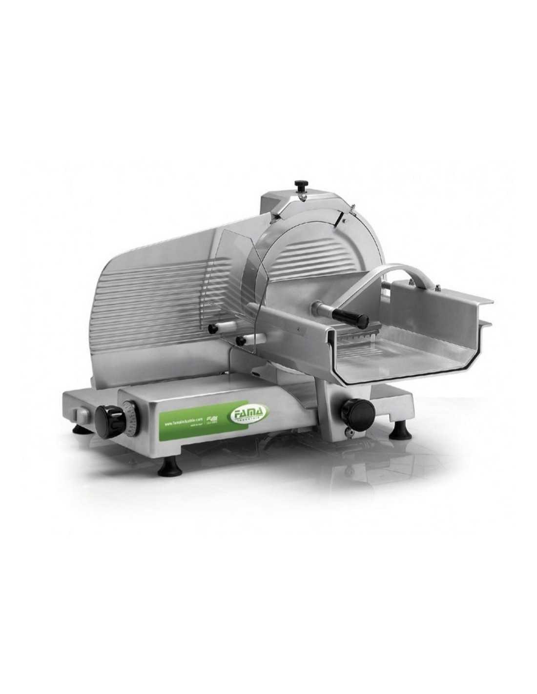 Affettatrice carne professionale - Mod. FAC371 - Diametro lama mm 370 - Telaio in alluminio anodizzato - Affilatoio fisso - Blocco carrello - Interruttore digitale - Monofase - Dimensioni cm 75 x 75 x 57 h