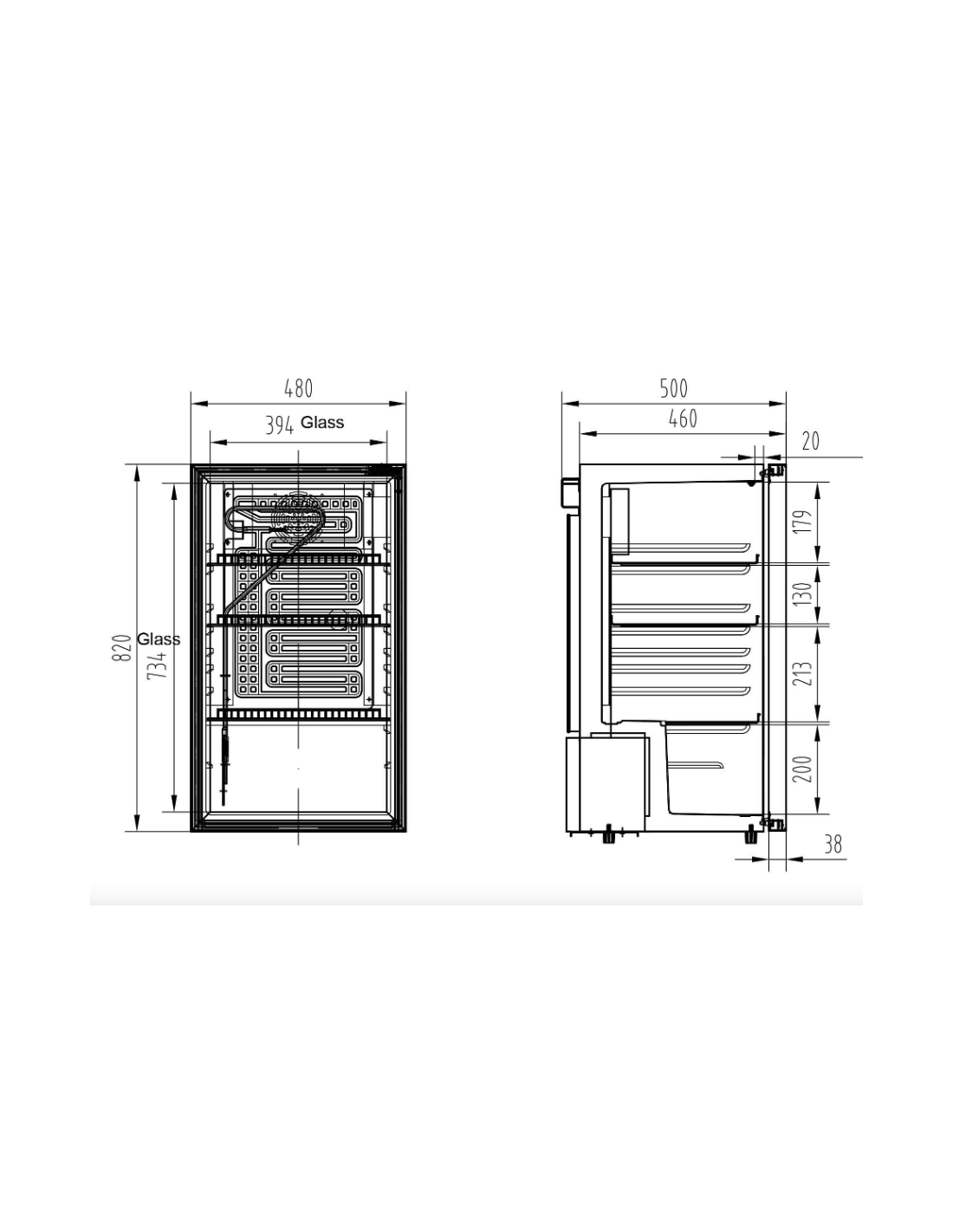 | La vetrina Counter Glass con 1 anta battente a tutto vetro ha refrigerazione statica mediante evaporatore a piastre. | |