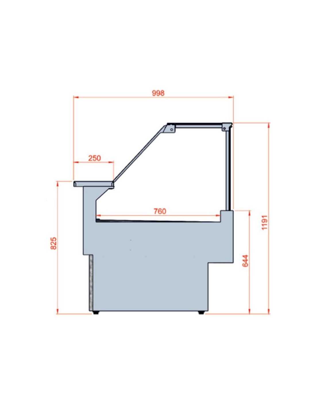 Banco alimentare - Vetro retto - Statico con cella - cm 250 x 79 x 122 h