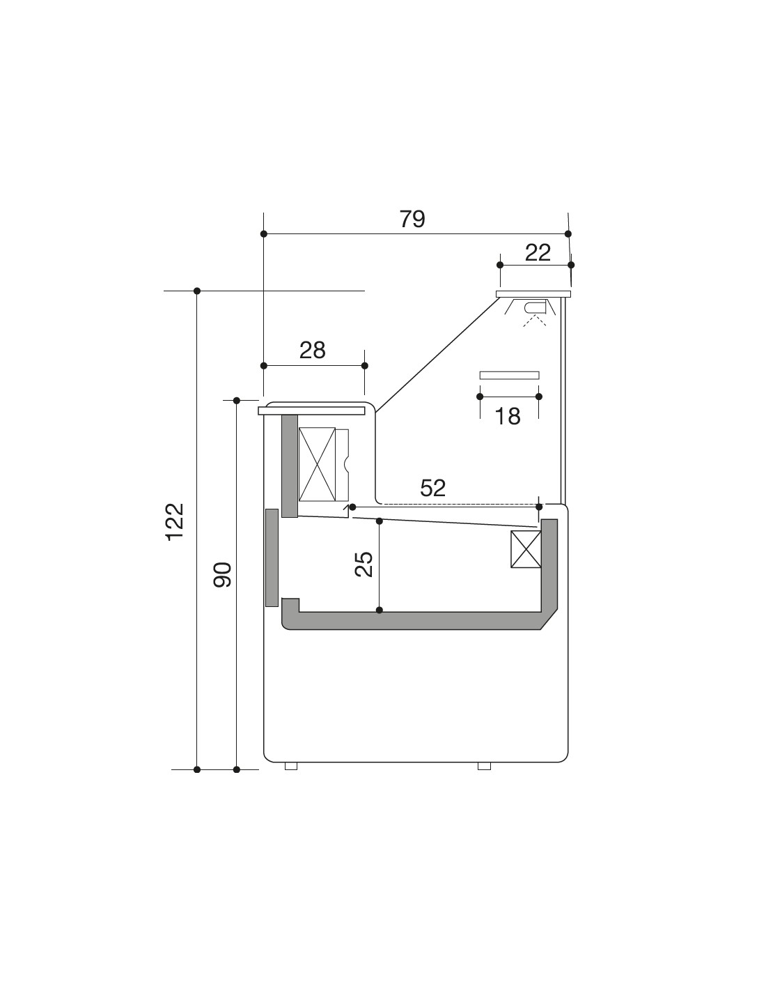 Banco alimentare - Vetro retto - Statico con cella - cm 100 x 79 x 122 h