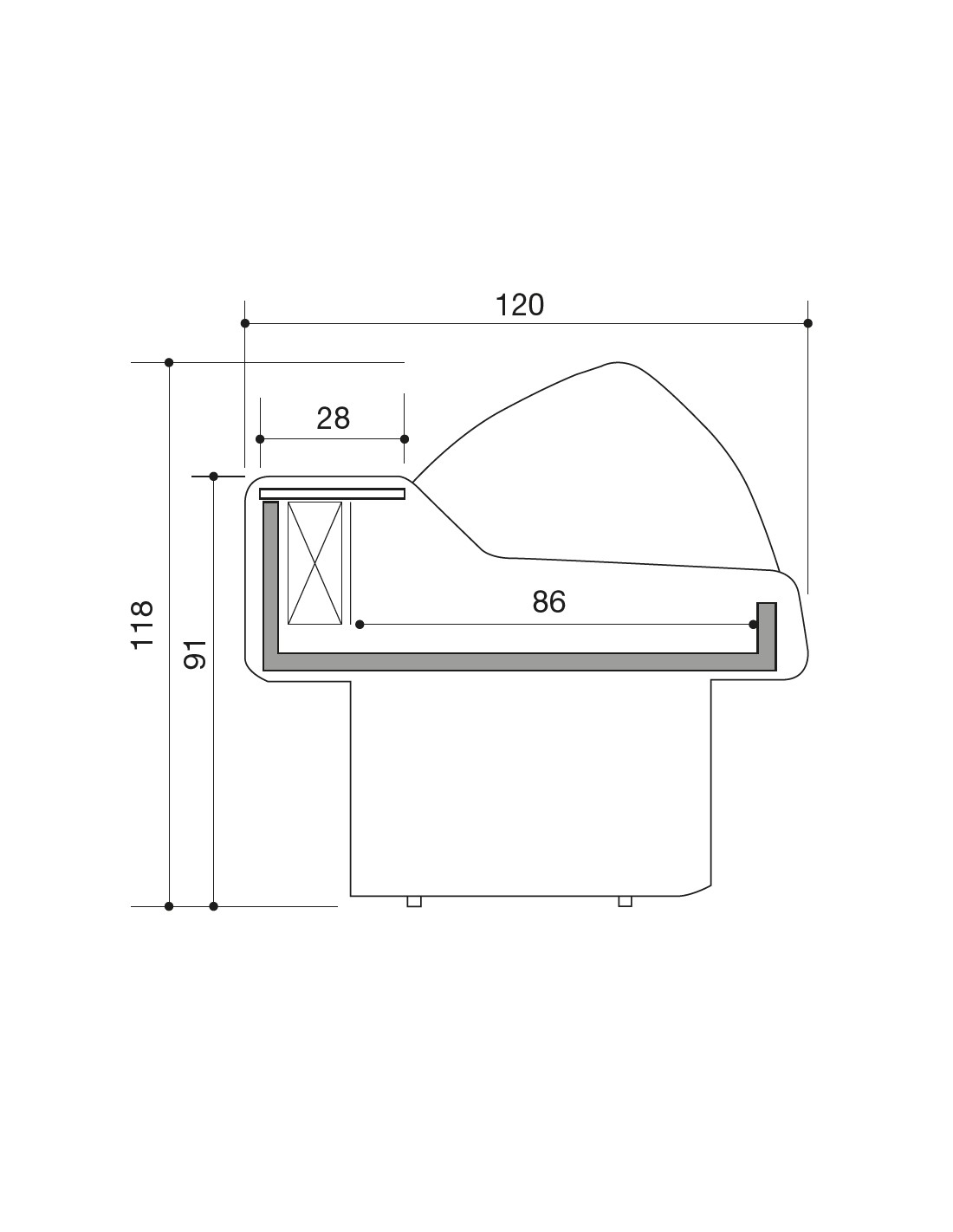 Banco alimentare per pesce - Vetro curvo - Statico - cm 250 x 120 x 118 h