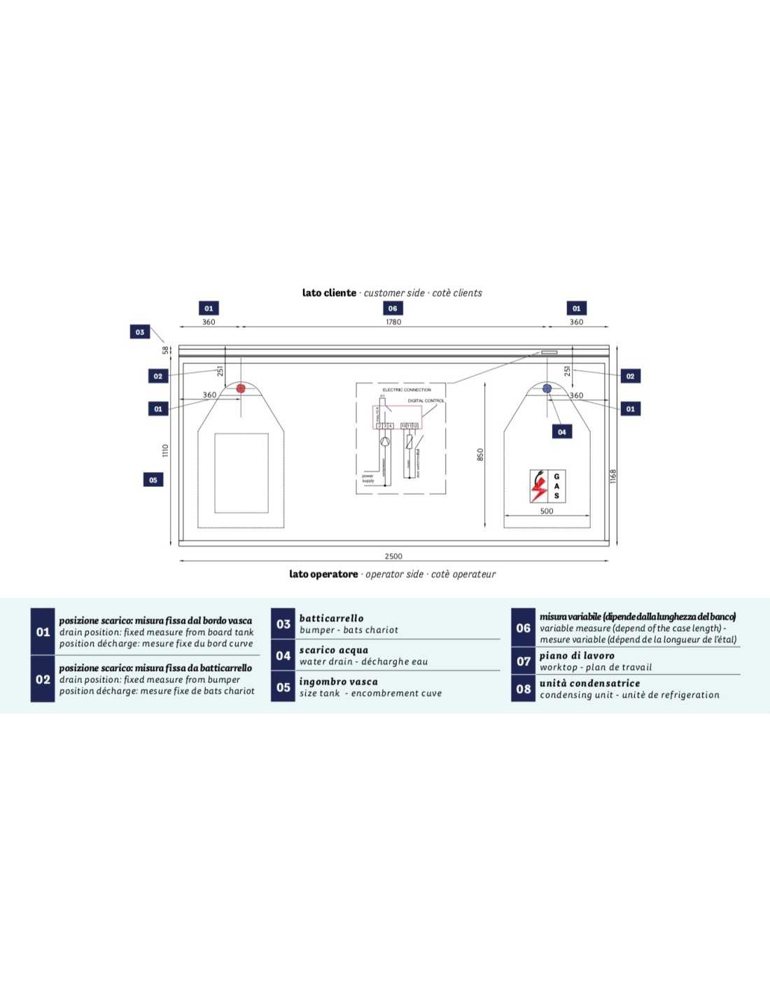 Banco refrigerato - Per pesce - Motore escluso - cm 218.8 x 116,8 x 90 h
