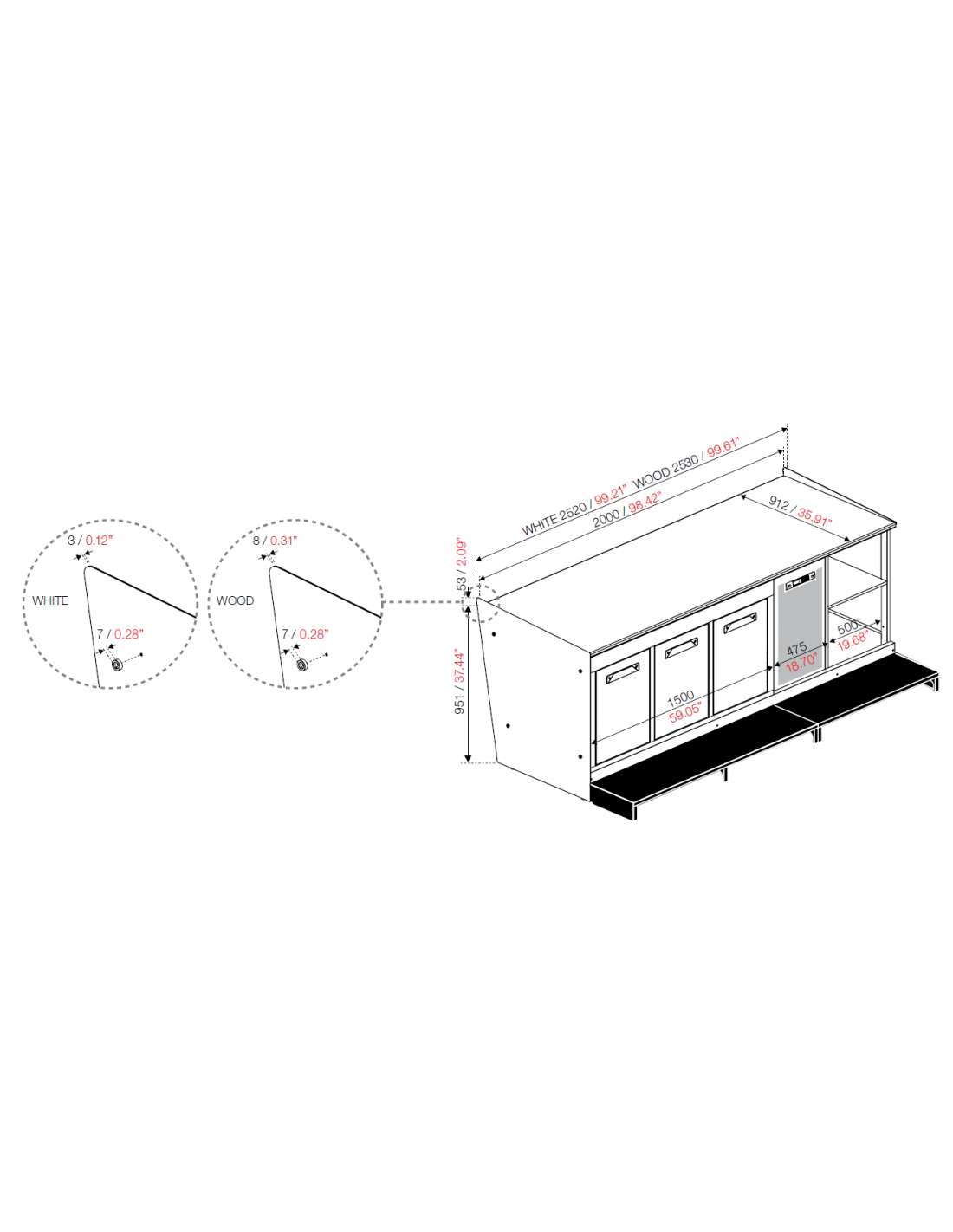 Banco bar e retrobanco - Cm 350 x 232,5 x h 95.1