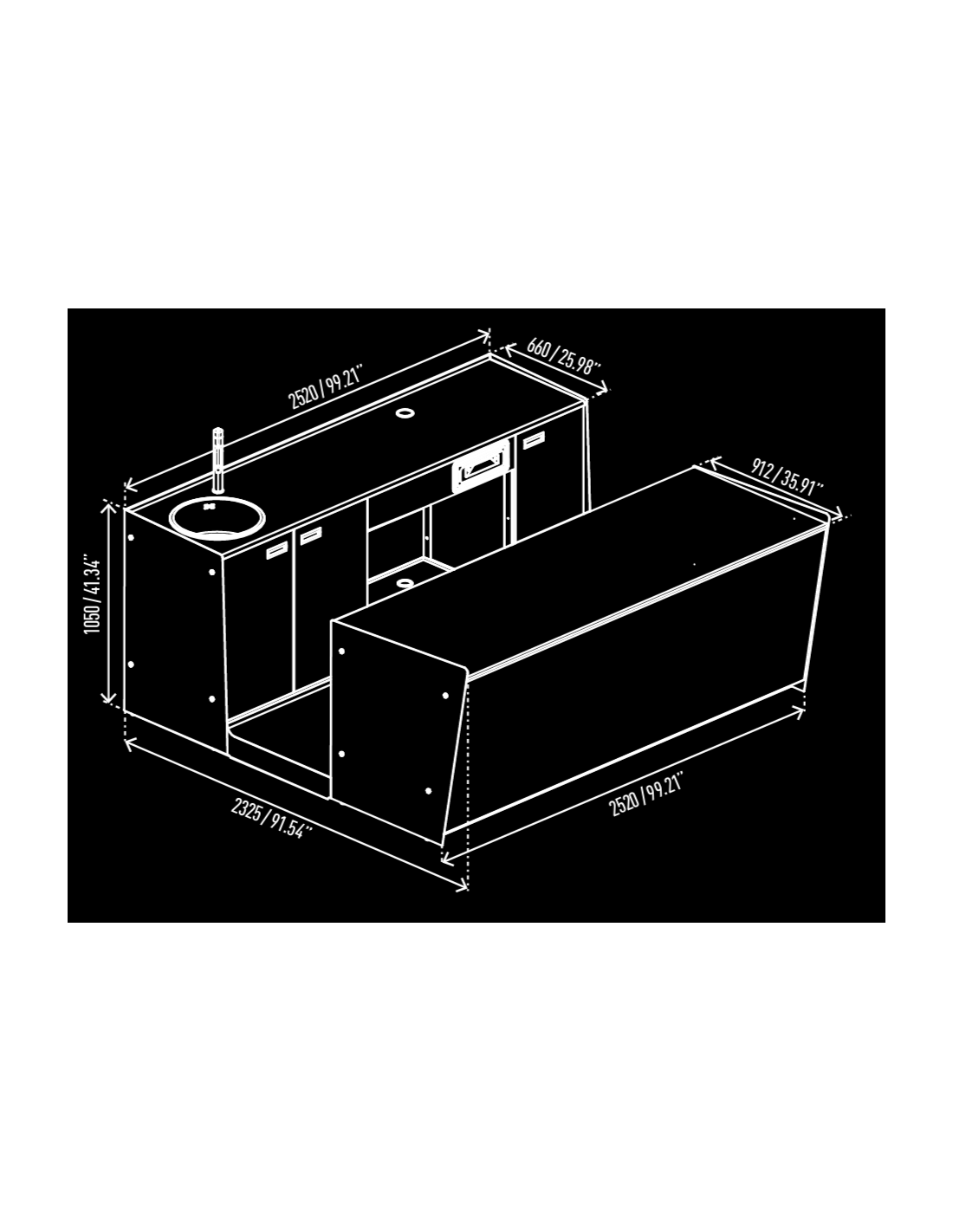 | Dimensioni | Cm 250 x 232.5 x 115 h |