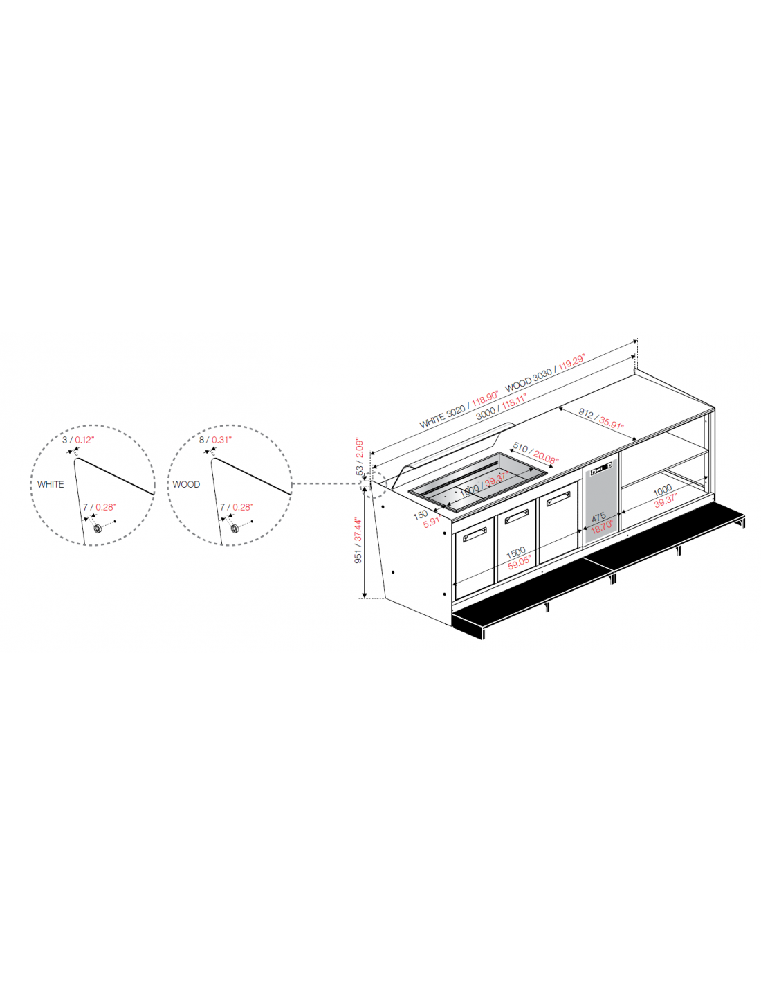Banco bar e retrobanco - Vasca refrigerata - Cm L 300 x P 232,5 x h 95.1