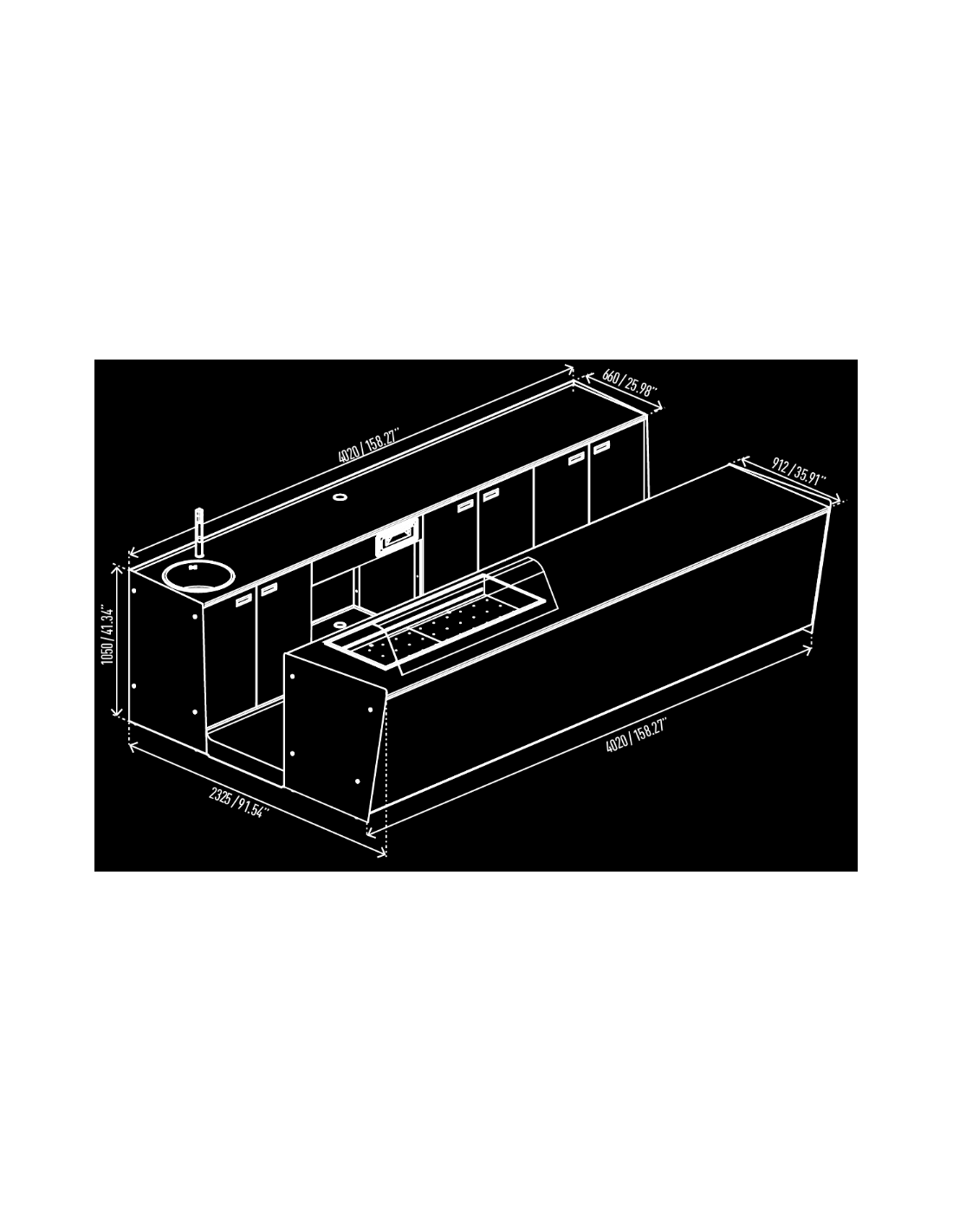 Banco bar e retrobanco - Cm 400 x 232,5 x h 95.1