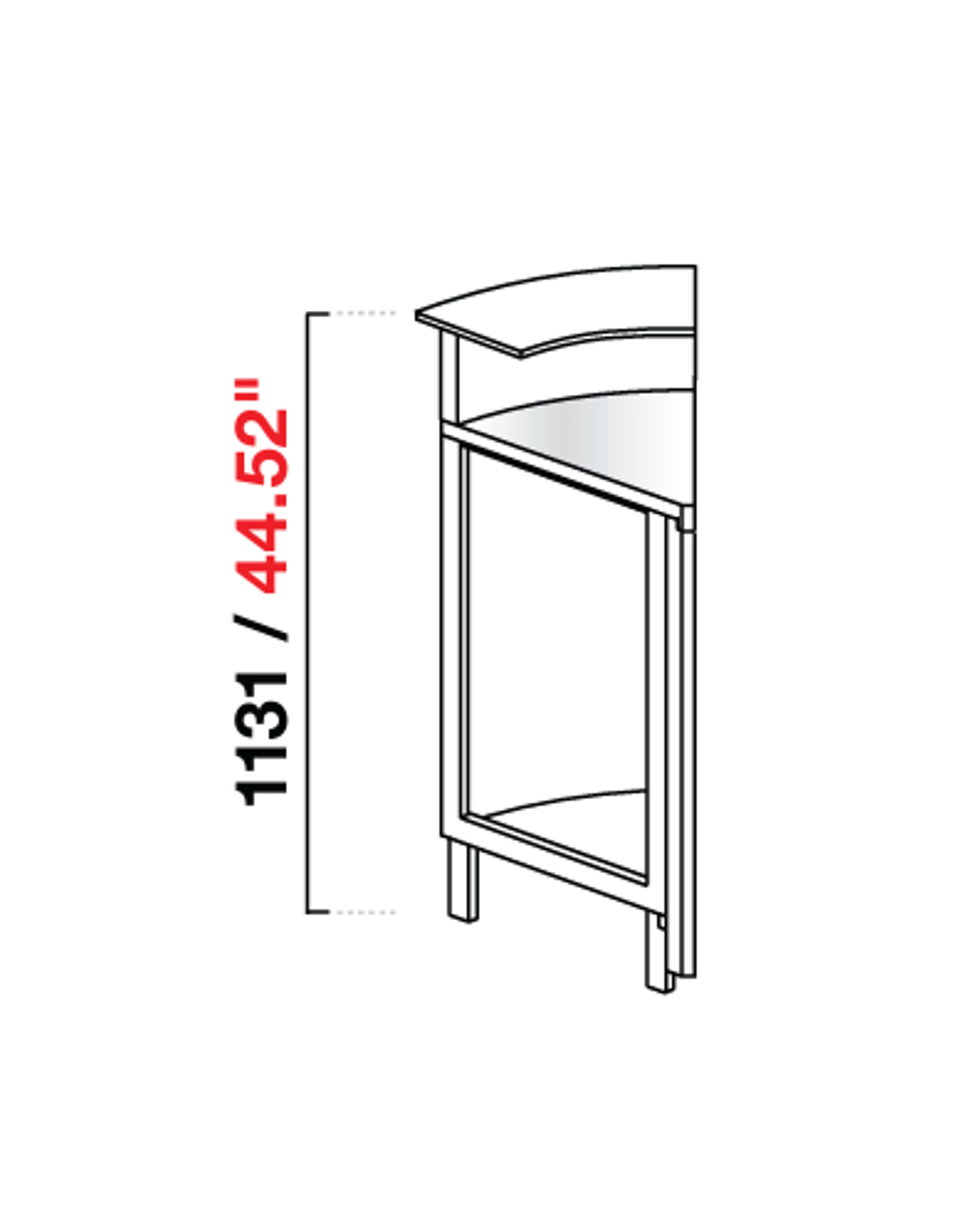 Angolo curvo 45° - Predisposizione bancalina - Dimensioni cm 68.8 x 68.8 x 113.1 h