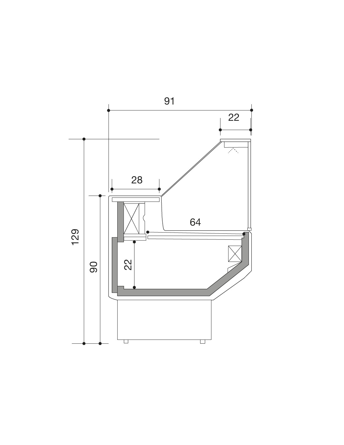 Banco alimentare con vetro dritto - Statico con cella - cm 104 x 91 x 129 h