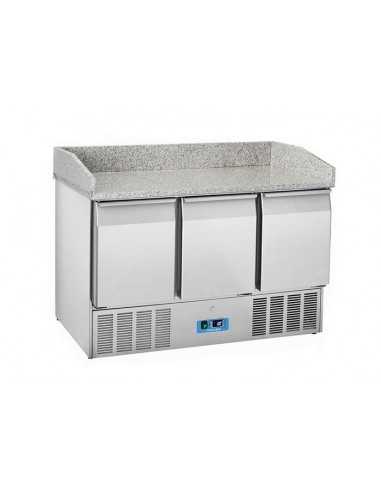 Banco pizza - Mod. CRM93A - Gastronorm 1/1 (cm 53 x 32.5) - N.3 Porte - Temperatura 0°/+8 °C - Refrigerazione Statica - Classe energetica D - Cm 140 x 70 x 102.2 h