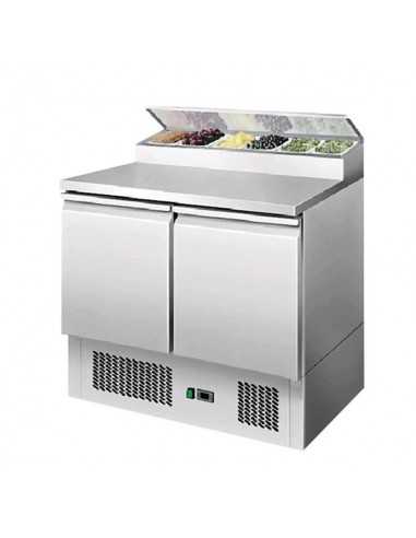 Banco pizza - Mod. ESL4943 - Temperatura -2°/+8°C - Con vetrina portacondimenti 5 x GN 1/6 - N. 2 porte - Capacità litri 300 - Potenza W 310 - Dimensioni cm 90 x 70 x 110.5 h