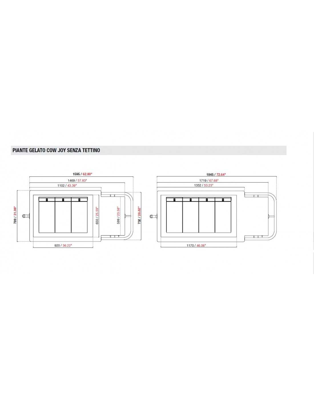 Vetrina gelateria - N. 8 x 2.5Lt o 4 x 5/7Lt - cm 107.2 x 56 x 46.7h