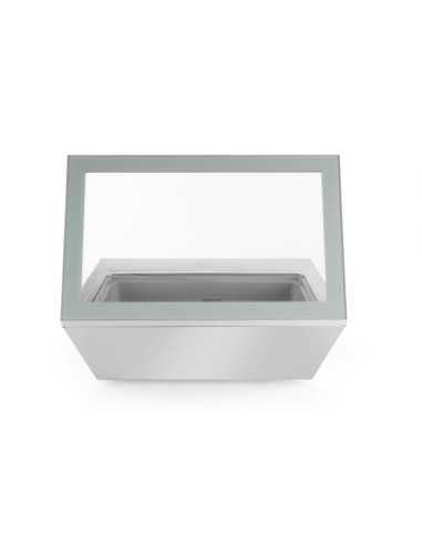 Vetrina per gelato - Modello VETGEL - Temperatura -24/-20°C - Capacità 77 lt - Autonomia 4 h - Adatto a 4 vaschette GN 1/3 o 8 vaschette GN 1/6 - Dimensioni cm 80.5 x 66.6 30.5h