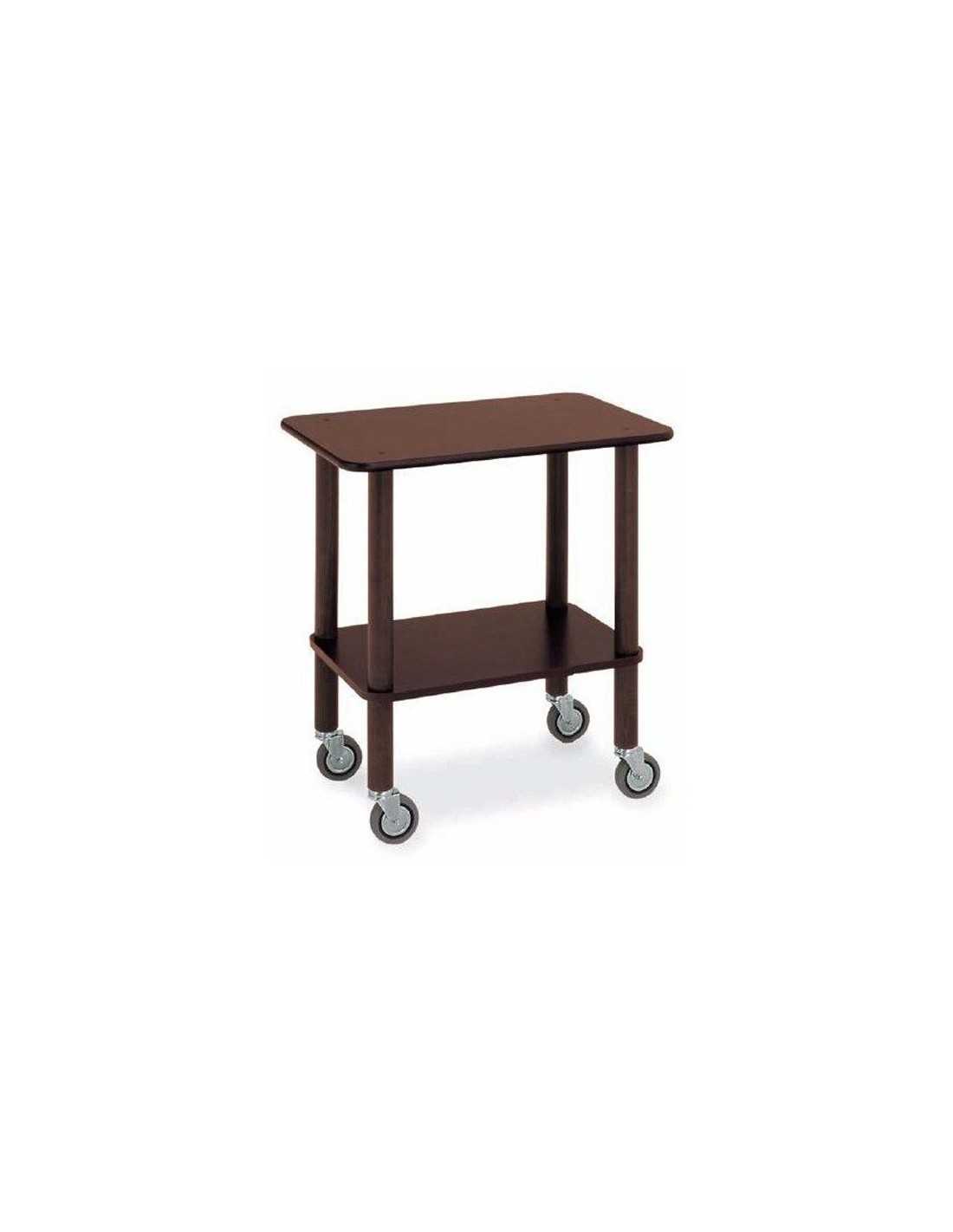 Carrello di servizio in legno - Modello 1095SW - Struttura in legno massello - Piano superiore con paracolpi perimetrale in gomma - Piani in nobilitato - Colore Wengè - Dimensioni cm 71x46x78h