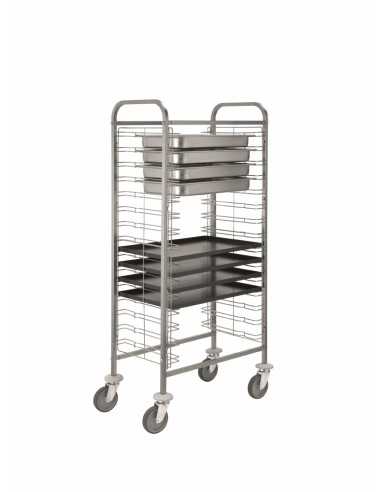 Carrello portateglie - Modello CA1656 - Struttura in acciaio inox - Guide in filo di acciaio cromato - Paracolpi in gomma - Ruote multidirezionali - Teglie e bacinelle escluse - GN 1/1 h 65mm 15 teglie 60 x 40 - Dimensioni cm 67 x 46 x 153h