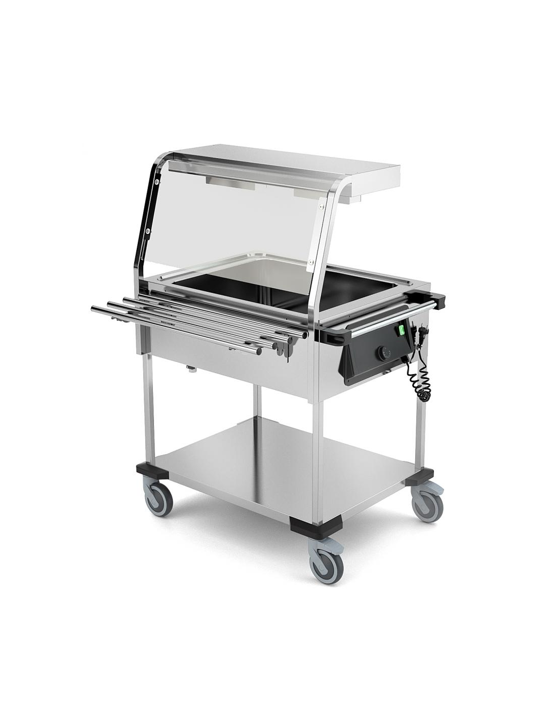 | Carrello bagnomaria in acciaio AISI 304 con vasca unica stampata per vasche GN fino a 20cm e con spigoli arrotondati. Illuminazione led. | |
