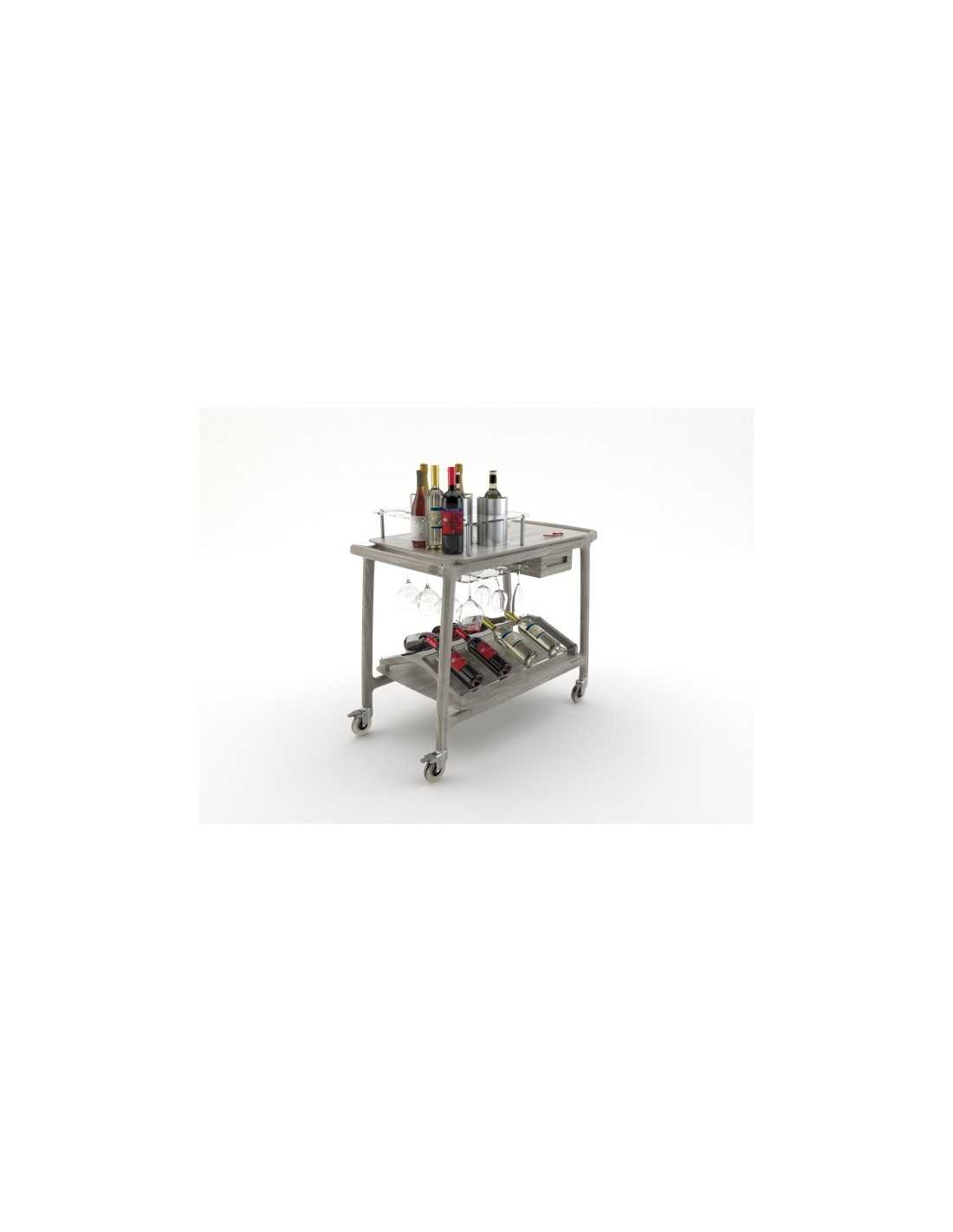 | Carrello per esposizione vini con cassetto, rastrelliera per bicchieri, vaschetta porta turaccioli e piani inferiore con struttura per esposizione bottiglie | |